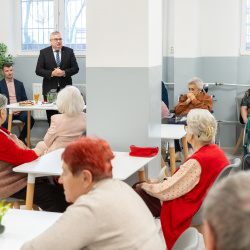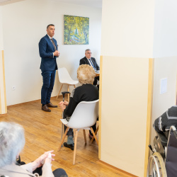 Riaditeľ domova dôchodcov Koloman Pongrácz vo svojom príhovore zdôraznil, že má veľkú radosť z toho je, že dámy už môžu privítať v obnovených priestoroch jedálne. Zároveň pripomenul, že táto rekonštrukcia predstavuje len jeden z míľnikov v procese rozvoja, ktorý sa v poslednom období podarilo naštartovať a v ktorom chcú pokračovať aj v budúcnosti.