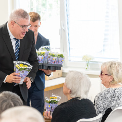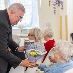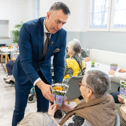Viceprimátor Juraj Puha srdečne pozdravil obyvateľky zariadení pre seniorov na Ulici generála Svobodu aj na Námestí priateľstva. Zdôraznil, že ženám vďačíme za život, výchovu detí a vysoko si ceníme ich často neviditeľnú prácu.