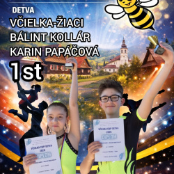 V tom istom termíne sa v Detve konala súťaž Včielka Cup a aj na tej mal náš klub zastúpenie v kategórii Včielka Žiaci, kde si prvé miesto vytancoval Bálint Kollár-Karin Papáčová.